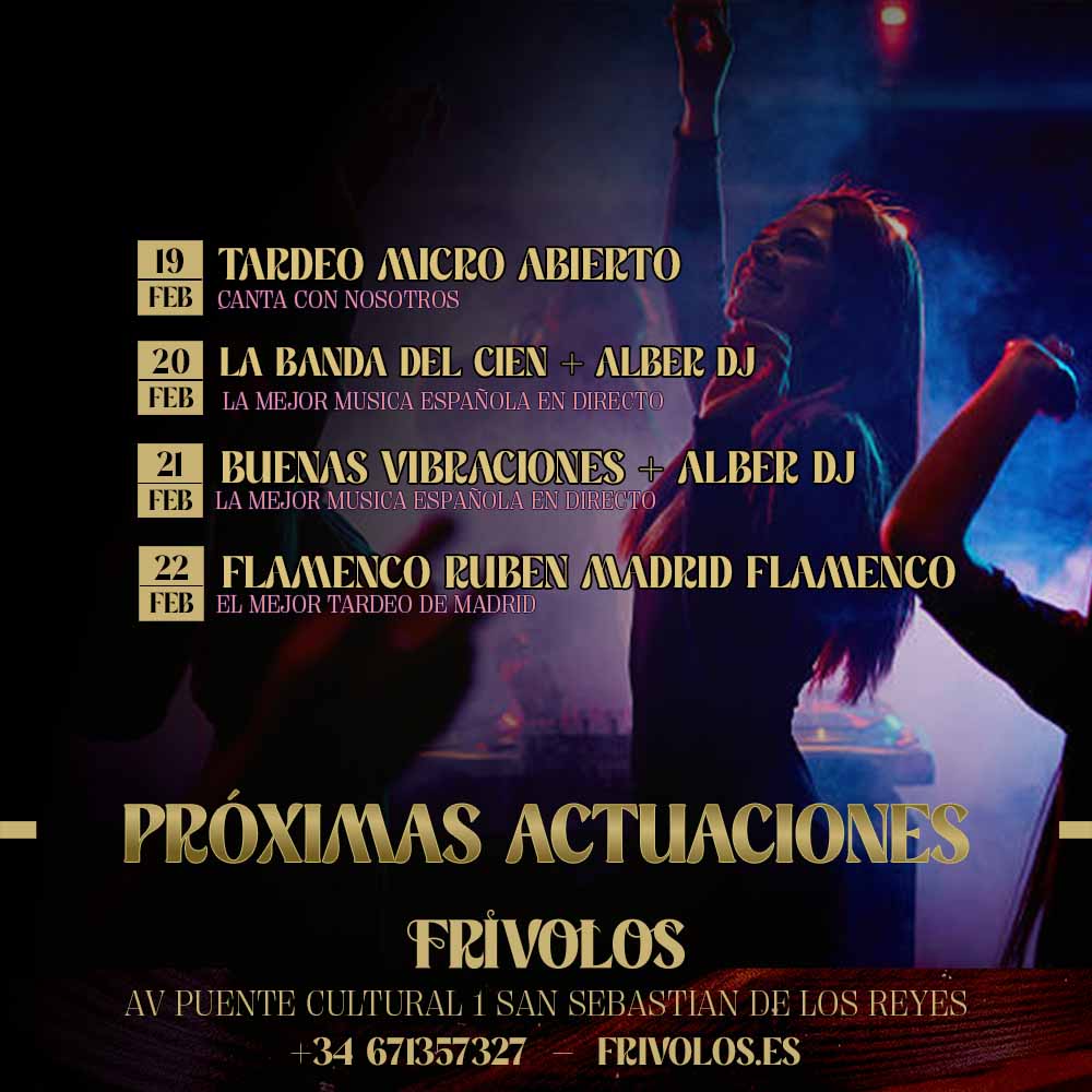 En Frívolos cada velada está acompañada por un espectáculo que eleva tu experiencia culinaria a nuevos niveles. Ofrecemos una gran variedad de entretenimientos en vivo que complementan nuestra propuesta gastronómica.
